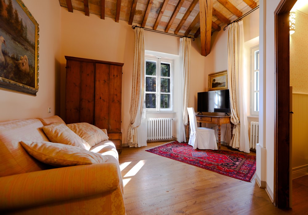 Per il tuo soggiorno in compagnia, o semplicemente per rilassarti all'interno di una stanza, che offre tutti i comfort necessari a soddisfare ogni tua esigenza, la Grande sala della villa è a tua completa disposizione, un posto comodo, accogliente e spazioso, che saprà accoglierti nel miglior modo possibile.